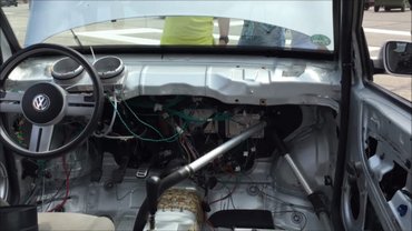 Rengeteg kábítószer mellett kellett még egy Seat Arosa 1,7 SDI váltója is, hiszen ez egyrészt rövidebb végáttételű, ami kell a kéttonnás kocsi mozgatásához, másrészt a Lupo 3L robotizált váltója gyakran elromlik. Na meg valószínűleg az elektronika nem tudja addig csúsztatni a kuplungot, hogy egyáltalán megmozduljon az Audi. Nem kis meló lehetett a Lupo elektronikus rendszerét összeházasítani az Audiéval, az ABS és a légkondi mindenesetre a Volkswagenből jön, és az Audi eredetileg a csomagtérben tartott akkuja is átköltözött a motor mellé.