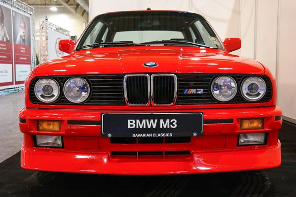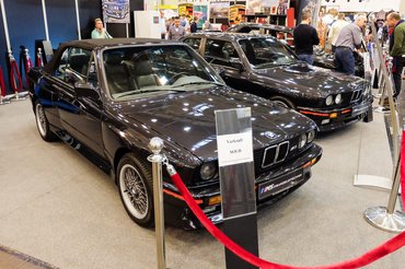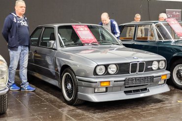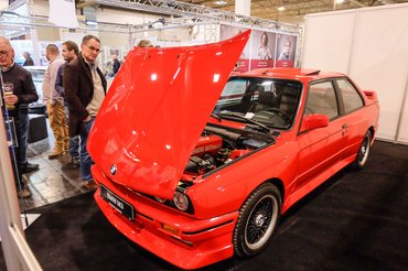 A magyarok? Hát, a többieknél sincs kapás. Naményi Peti (Bavarian Classics) két pavilonnal odébb, egy vegyes alkatrészes/autós szakmai pavilonban kapott helyet (nagyon későn jelentkezett), de szerintem jó helyen van a BMW E30 M3 Cecottója, épp mindenki belebotlik. Át is ruccantam hozzájuk, elég sokan nézegetik az autót, amely a paradicsompiros színével egészen szürreálisan kívánatos a jellemzően unalomszürke vagy egyen-metálfekete M3-asok után. Pedig azokból sok van. Peti 110 ezer euróért tette ki a saját kocsiját, ami elég húzós egy M3-asnak, hiszen ott az átlagárak ilyen 90 ezer euró környékén alakulnak, de amennyire meg tudom ítélni, egyik sem ennyire szép.