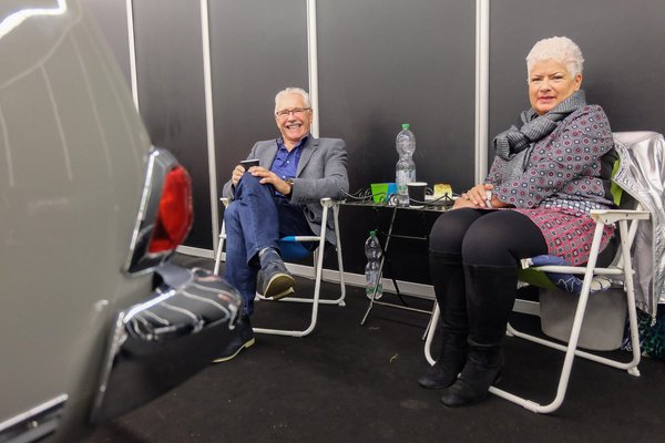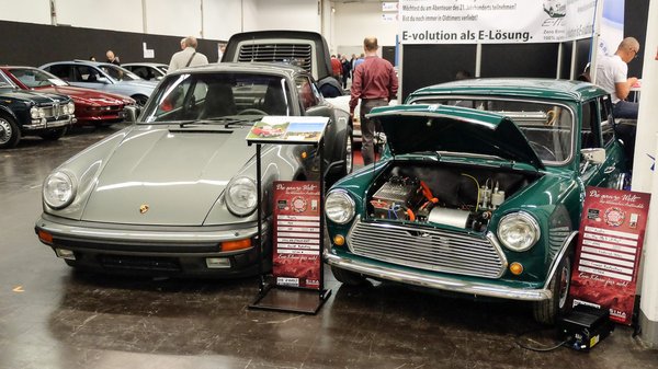 Amúgy Fehér Gergő és Linczmayer Balázs barátaim itt átellenben, épp a dögszín Cecotto orránál rendezték be kétautós standjukat. Egy villamosított Minivel és egy halálosan felújított 911 Turbóval (a szalonban nem volt ilyen) állnak itt. A Minire jönnek az ajánlatok, de mind fura – csináljon nekem is egyet, csináljon nekem tízet, mert flottába kéne, ilyenek –, a Porschébe már komolyan beleturkálnak, mert 911 Turbo ugyan van itt, de egyik sem ilyen részletekbe menően restaurált. Tegnap nagyon állt körülöttük a levegő, ma már nagyobb a zsizsegés – mindenki reménykedik.