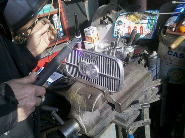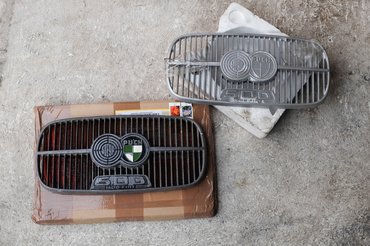 Kábelkötegem még nincs, biztosítéktáblám viszont már van, a tankot is előtúrtam, amin rajta van a korai Puchok érdekessége, a benzincsap. Mondjuk, utóbbinak elég ramaty az állapota, nem hinném, hogy csere nélkül megússza. Biztosan valami korabeli osztrák vagy német motoré jó lesz rá. Még jó, hogy orr-emblémából akad kettő: egy eléggé nagyjábóli mintának való, utánöntött példányt, amit Tóth Gabitól kaptam, Gál Peti (tűzoltó, kommentelőnk) megcsinált szépre, csak le kell festeni. Ha pedig az valamiért nem stimmel, hát vásároltam is egy homokfúvandó, viharvert darabot is, amin meg hátulról rajta a tyúkrács. Valami lesz ezekből, fogpiszkáló, ha el nem baszom.