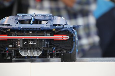 Oké, a Technic Chiron kulcsa ilyen trükköt nem tud, csak a hátsó spojlert mozgatja, de akkor is, ez egy elég klassz részlet, jópofán mutat a kis Technic elemekből készült bicskakulcs a kész modell mellett. Ami egyébként egy elég méretes darab, 1:8-as méretarányban 56 centi hosszú, 25 centi széles, és 3599 darabot kell összepattintani-csúsztatni, hogy minden a helyén legyen.