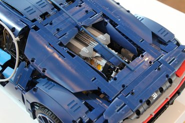 Természetesen mozognak a dugattyúk a W16-os blokkban, a kormány melletti váltófülekkel lehet kapcsolgatni a szekvenciális sebességváltót, rendesen működő független felfüggesztése van az összes keréknek. A modell alapvetően sztenderd Lego Technic alkatrészekből épül fel, csak a kerekek egyedi cuccok. Ez persze tök természetes, hiszen épp ettől LEGO, minden építőelem felhasználható valami más megépítésére. Igaz, sok olyan elem van, ami a Bugatti két kék árnyalatára van színezve, így ezek mégis csak különlegesek, mert legtöbbjük más készletben ebben a formában nem megtalálható.