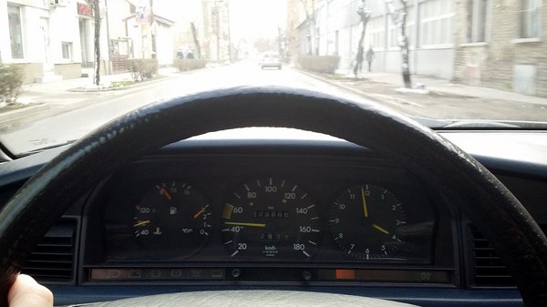 Már ebben a kocsiban is 410 ezren túl járt a kilométer-számláló, amikor utoljára néztem, ami persze még semmi az előző, nyolc évig velünk lakott 190-eshez, EFY-hez képest, amit ha jól emlékszem, 519 ezerrel adtunk el, és utána még sok évig tudtuk, hogy használják. A Kati 190-ese még mindig baromi jó, szépen egyben van, működik, bár kicsit többet eszik és keményebben rugózik, mint a korábbi, első szériás. Azt a lelkem mélyén jobban szerettem, emez jobb állapotú.