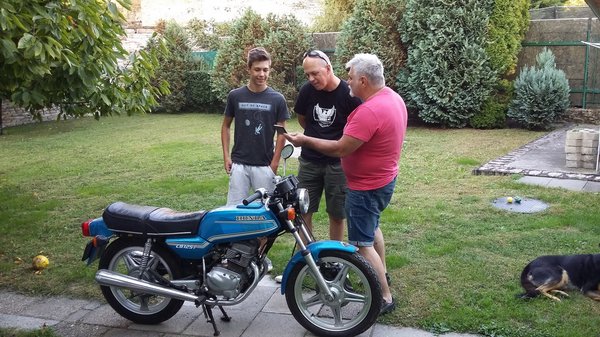 Két nagy másik ugrás is bekövetkezett – Bálint fiam motortulajdonos lett, és Smartguru jóvoltából egy csinos kis CB125 T Hondára sikerült szert tennie. Egyedülálló szerkezet, mert a nyolcadliteres blokk ellenére kéthengeres, nagyon finom gép, közelről mindene ékszerszerű. Akkor készült, amikor ezt a kategóriát komolyan vették a Hondánál, és úgy is csinálták meg az egész járművet. Most nem írok róla többet, mert a szerelések sorában el szeretnék jutni egy nyugvóponthoz, amikor körbe lehet tekinteni a tájon és elmélkedni. Akkor jön róla valami hosszabb.