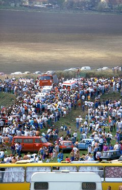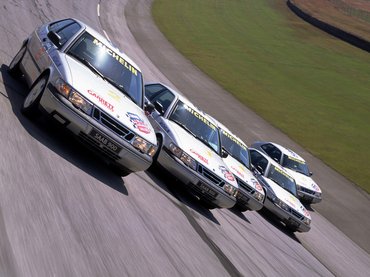 Hogy miért volt félelmetes? Ezek gyártósorról találomra levett, felkészítetlen, háromajtós, 185 lóerős Saab 900 Turbo szériaautók voltak, amelyekbe a versenypálya követelményei miatt beszereltek egy bukókeretet, oszt' annyi. A folyamatos gyötréstől mindnek két-két helyen, ferdén elrepedt a szélvédője, de ez volt a kisebbik baj. A nagyobbik: a pályáról felszálló betonpor a hetekig tartó nyúzás során kisebbfajta szemcseszórást végzett az üvegen, s amikor szembesütött a nap, az egész ablakfelület belülről nézve egyetlen tömör, aranyszínű lemezé változott emiatt. Az egyik futamom délelőtt tízkor zajlott, azzal nem volt semmi gond, a délutáni viszont a lemenő napnál történt. Ami szép a természetimádónak, az nekem maga volt a körönkénti kivégzés, amikor újra meg újra az ív fele hosszában semmit, de semmit nem láttam abból, merre megyek. Azok a Saabok 230-at tudtak végsebességre, de a mutató az idő nagy részében fixen oda volt szögezve a 250-re, tehát én annyinak hittem...