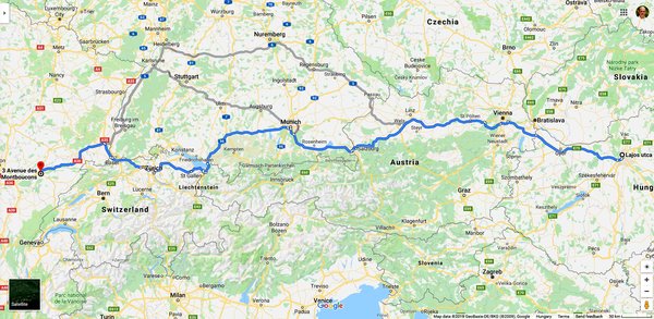 A költségvetésben egy óvatos 11-es fogyasztást lőttem be az Alfának, bár ennél remélem nem csak egy, hanem több literrel kér majd kevesebbet, de gondolni kell az esetleges szivárgásokra, elcsöpögtetett fél tankokra, hosszú hegymenetekre, dugóban tötymörgésekre is. Elzúzunk Bécs-Salzburg felé, majd München érintésével jöhet Memmingen, Lindau, Bregenz és már Svájcban is járunk. Onnan a szokásos Winterthur-Zürich-Basel-menet, át Franciaországba, Mulhouse (nem, két perc alatt nem lehet sajnos megnézni a Bugatti-múzeumot, tehát kihagyjuk), és reményeim szerint éjjel tízre elkapjuk a besanconi szállást. Most 1250 kilométert és 11.10-15.10-es menetidőt ír a távra a Google, forgalomtól függően. Mi nyilván a hosszabbik végén leszünk a skálának, mert lehet ugyan az Alfával 130-at tolni folyamatosan, de többször meg kell majd állnunk a zaj, a több figyelmet igénylő vezetés miatt – nem új autó ez, ekkora táv levezetése pedig egy újjal is elfárasztja kicsit az embert.