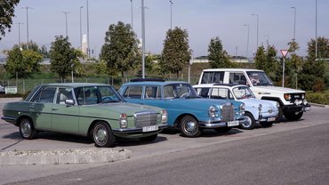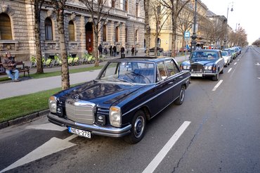 Az idei, hatalmasnak ígérkező treffenre pedig úgy döntöttünk – nem éghetünk többet szedett-vedett, csak hunyorítva veteránnak tűnő autókkal, most le kell tennünk a névjegyünket egy elegánsabb bevonulással. Idén hatvan éves a Heckflosse, azaz a fecskefarkú Merci, s mivel a társaságban van pár ilyen autó, azoknak mindenképpen jönniük kell. A többiektől az elvárás – krómütköző, pléh kerékkupak.