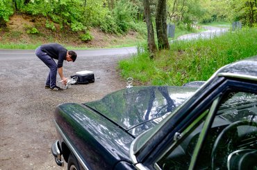 Hiába veteránozik itt már mindenki 10-20 éve, vagy még hosszabb ideje, azért korántsem egyszerű egy efféle csapatot összetrombitálni. Most hirtelen hat autóról tudok, ami a konvojt alkotja, s közülük csak egy lóg ki mindenféle műanyag ormótlanságokkal – Felkai Gabi 124-es kombija. Bár, ha belegondolok, lehet, hogy Márkus Imi is egy olyannal jön, nem tudom. Gabinak van mentsége – a 250-es állólámpása Novoth Tibinél várja a motorikus feltámadást, Tibi pedig szörnyen el van havazva. Imi pedig az az ember, akinél mindig ott a szerszám, a szakértelem, az izomerő, sokszor még a pótalkatrész is, ezért ő sárga angyalként mentesül a kötelezettségek alól. Hozzáteszem, az ő autóik is mindjárt harminc évesek.