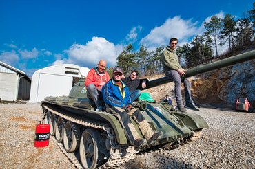 Martin, a tapasztalt harckocsizó kiképző tiszt azért szegődött mellénk egy teljes napra, hogy mélyebbre tudjunk merülni a veteránozás nehéziparába. Szlovéniai tartózkodásunk alatt egyedül a lánctalpasokról voltunk letiltva. Mindent bevetettünk, a bociszemtől a "Nem mered odaadni a tankot, mi?" mondásig, Kopasz szerintem még az eurós bukszáját is kipattintotta a zsebében, hátha attól enyhül a könyörtelen szív.