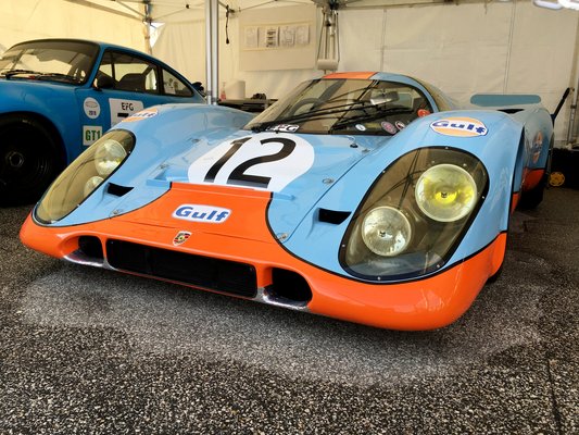 Oké, ezek a dolgok mind érdekesek, de sokkal fontosabb volt közelről megnézni a Gulf-kék Porsche 917-est. Mert a 917-es akkor is a legszexibb Porsche, ha leszámítjuk, hogy kevés nála nagyobb versenyautó-legenda létezik. Én nem is tudtam régen, hogy mi mindent nyertek 917-esekkel, de imádtam a formáját. Ilyenkor persze mindig a 917K-ra gondolok, a Kurzheckre, azaz Rövidseggűre. A többi is klassz, de a K, az igazi. Talán azért, mert kölyök koromban ilyenekkel verettünk a csehszlovák autópályán? Ez mondjuk a Ford GT-rajongásomat is megmagyarázná, mert az is volt a pályához.