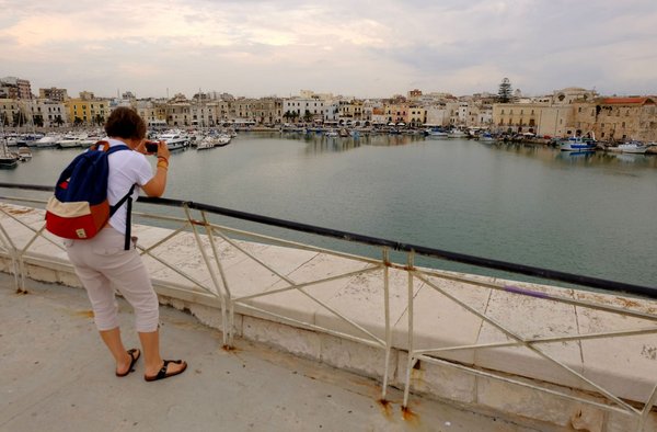Bariban szakadt az eső, de Bariért nem kár, mert Bari egy nagy, kellemetlen kisugárzású kikötőváros, egy percet nem akartunk ott tölteni. Húztunk tovább Traniba, egy korai, teljesen néptelen városjárásra, s onnantól meg kvázi végig tökéletes időnk volt az utolsó Pugliában (Puglia – a terület) töltött napunkig, amikor épp megint Traniból hagytuk el a csizmasarkot. Soha rosszabbat.