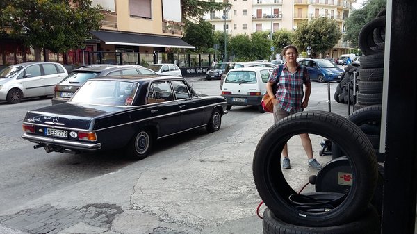 Megnéztük a romokat - Pompeji még mindig csodás, különösen a teljesen épen megmaradt kupleráj - aztán kerestünk egy gumist. Kicsit ott volt a zabszem a hátsó felemben, hogy honnan szerzünk két 175 R14-es, teljes magas (/80) gumit, vagy legalább egy pár 195/70 R14-et (ez az átmérőben stimmelő váltóméret), ha cserélni kell, mert ezek a méretek tíz-tizenöt éve kikoptak a használatból. De a gumis máshogy gondolkozott.