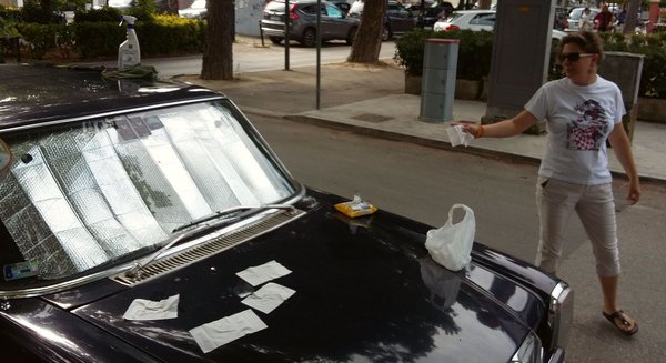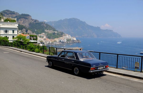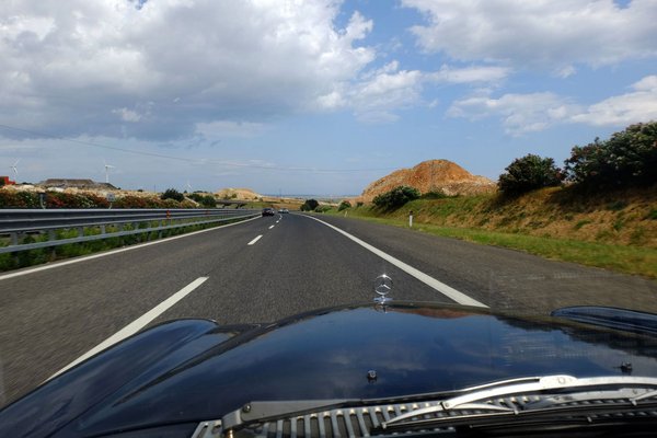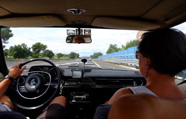Csak aludtunk, húztunk tovább a tükörsima horvát autópályán, amelyen ott délen már egész elképesztő a vidék, a dombok mögül bevillanó tengerszemekkel, viaduktokkal, alagutakkal. És alig vannak autósok. Ott azért akadt két kis bibi – a hőmérő felfelé kezdett kúszni, volt olyan emelkedő, aminek a tetején már kinyitottam a fűtést az én oldalamon, mert már 95 táján járt a víz. Később egyszer, talán az Amalfi-partról Ravallóba meredeken felzúzva egy alkalommal még ennél is súlyosabb lett a helyzet, mert akkor már a Kati oldalán is ki kellett nyitnom a fűtést. De megállni akkor se kellett. Aztán, érdekes módon, a hazafelé úton már elmúlt ez a melegedés, gőzöm sincs, mi történhetett – a rendszer addigra talán kidolgozott magából egy légbuborékot? Megesik az ilyen.