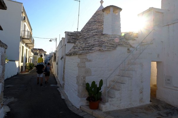 Lássuk csak, mi volt még. Ja, igen, a trullis környék is nagyon bejött. Ide a locorotondói szállásunk kapcsán cseppentünk, amely maga is egy trulli volt, s ezt az építészeti furcsaságot jobban meg akartunk nézni. A trulli kúpház, pontosabban kúpokból álló ház, a táj parasztjai laktak, és sok helyen ma is laknak ilyenekben. Minden szoba nagyjából kör alakú, parányiak az ablakok, de legérdekesebb a tető, amely precízen méretre vágott, habarcs nélkül csúcsosra pakolt kövekből áll.