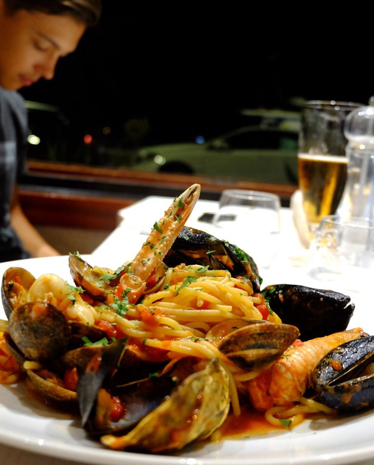 Féltem, hogy a Rosa dei Venti varázsa elmúlt, mert az az étterem, ahol Nápolyban, a szállásunk mellett kajáltunk, frenetikusan jó volt. De nem, Porto Garibaldi még mindig ver mindent. Iszonyatosan túlrendeltük magunkat, egy vagyont otthagytunk, mindenki hajnalig fenn volt a rosszulléttől, annyira telezabáltuk a gyomrunkat, de ezt nem lehetett kihagyni.