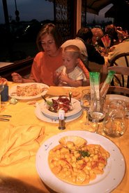 Onnan a szomszéd város Porto Garibaldi, s mi a pincében talált biciklikkel közelítettük meg mindig, a kis csatornán átkompozva minden második este. Itt kevés a turista, viszont van egy jó móló, illetve találtunk egy Rosa dei Venti (szélrózsa) nevű éttermet. Jobb halkaját azóta se ettünk, mint ott, sehol. Annyira megszerettük, hogy azóta több más utunk végét is rákanyarítottuk Porto Garibaldira, csak hogy megint ott költhessünk el egy vacsorát – jártunk itt Erával, a Bianchival... és most Nessyvel is.