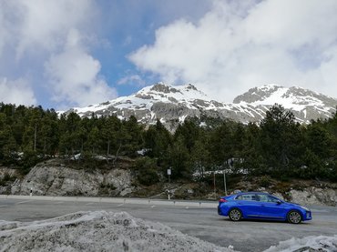 További jó hír, hogy a magashegyi ritkább levegő miatti teljesítményvesztés csak a belső égésű motorokat érinti, a kis villanyost pont nem érdekli, és mivel a 265 Nm-ből akár 170-et is kiizzad egyedül, a teljesítményen nem nagyon venni észre, hogy milyen magasan járunk. A másik, amit megtapasztalhattam ebből a kalandból az az, hogy önfeledt csapatásra kár is számítani ilyen helyeken. A szélsőséges magashegyi időjárás miatt az út gyakran le van zárva. Amikor pedig mégis nyitva van, rettentően sokan és lényegében minden közúti közlekedésre alkalmas eszközzel érkeznek az emberek. Lovaskocsin kívül gyakorlatilag mindent láttunk, a leggyakoribb személyautókon és motorokon felül rengeteg a kerékpáros, lakóbuszos, és teherautós próbálkozó is. Az út keskeny, szembe is jönnek, a hajtűkanyarokba pedig nehéz belátni.