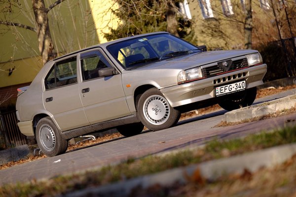 Csakhogy az Alfa 33-as az az autó, amit soha nem adnék alá kezdőjárműnek. Mert ereje van, tényleg feleslegesen sok is – Littner Zsolti barátomnak van egy talán tizenegy lóerővel erősebb, két ikerkarbis QV-je ugyanebből, de azon kívül, hogy az sokkal zajosabb, nem érzem sokkal erősebbnek, viszont jó két literrel többet eszik. Ez a befecskendezős 33-as is simán megüti az akkori GTI-szintet a mindenhonnan veszettül húzó, 107 lóerős bokszerével, pehelykönnyű karosszériájával.