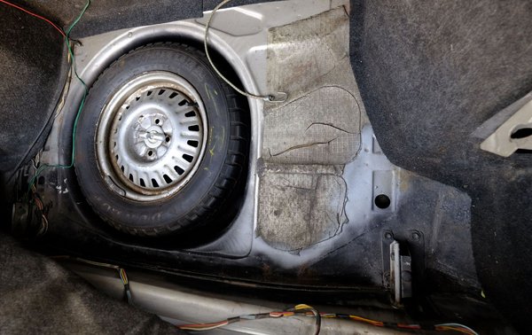 A 33-asom svájci autó volt, és szerintem az első tulajdonos alaposan kinyomhatta Waxoyl üregvédővel, mert annak a fekete nyomait mindenütt látom az első tornyok, hossztartók, hátsó doblemezek eresztékei mentén. Sajnos a Waxoylt is meg kellene újítani pár évente, ami az elmúlt harmincegy esztendőben nyilván nem történt meg, ezért ez az autó is elkezdett rohadni.