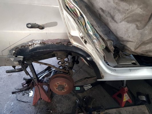 Los Angelesben még rosszabb dolgok derültek ki. Kell egy első sárvédő is. Szereztek. A kis csipa a hátsó íven egy teljes ívcserében végződött, mert 2016-ban ugyan kész lett a kocsi fara és az a munka tart is, de a szélekhez nem mentek ki akkor Csabáék. Ezen az oldalon most ki kellett.