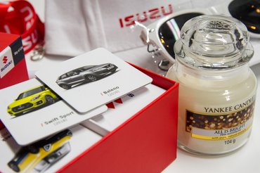 A szokásos nyakbaakasztón és tollakon kívül isuzus baseballsapkát és vagány napszemüveget is bezsebelhetsz. Ezekkel a cuccokkal mindenki tudni fogja a strandon, hogy a Totalcar egyik Hiénájának büszke győztese vagy. Az illatgyertya pedig az otthoniakat is emlékeztetni fogja a győzelmedre. A nyereménycsomag fő eleme pedig egy suzukis memóriakártya, ami az egész családot összehozza a nappaliban.