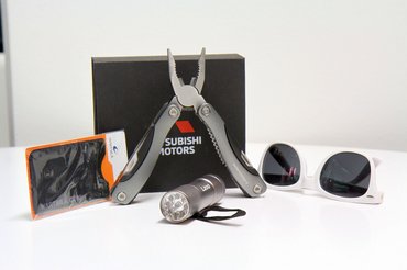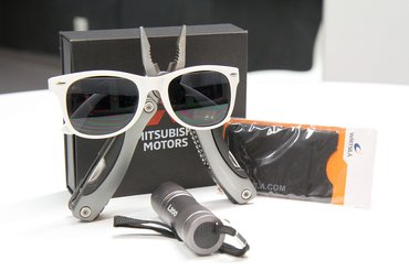 A Mitsubishi L200 bemutatóról származó, esztétikusan brandingelt multitoolhoz tartozik egy zseblámpa is, mert azt senki nem garantálhatja, hogy az a nyomorult sasszeg jó látási viszonyok között fogja elhagyni az őrhelyét. A Ssangyong napszemüveg szintén tökéletes társad lesz, amikor verőfényben, hunyorgás nélkül betolod az autó alá a krokodilemelőt, és a könnyeidet is remekül rejti, miután a hengerfej összes csavarja a menettel együtt jött ki.