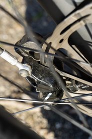 Minden végigfűzött ösvény maga volt a katarzis, amikor fent voltam a hegyen, egy percre nem kérdőjeleztem meg, hogy a bringa megéri az árát. Viszont, miután hazaértem, letámasztottam, és kiment az adrenalin, elgondolkodtam. Hajszál híján egy millió forint belépő Sram alkatrészekért? Tényleg? Nehéz megideologizálni, főleg, mert akármennyire is erős maga a váz, a perifériák tulajdonképpen méltatlanok, a féket egyenesen bűn felrakni egy ilyen kaliberű bringára. A Sram Guide R még jól is hangzik, hiszen mindkét nyereg négydugattyús, elöl 200 milliméteres a tárcsa, minden adott, hogy működjön. Aztán mégsem. Nincs például nyomáspont, nem jól adagolható, és a legrosszabb, hogy nem is fog különösebben jól. A Nagy Kevély Pilisborosjenő felett azért messze nem egy Csomolugma, de mire egy meredekebb ösvényen leértem a gerincről a hegy lábáig, már csak reménykedtem a megállásban. Ez a fék még egy fele ennyibe kerülő bringán is kevés lenne.