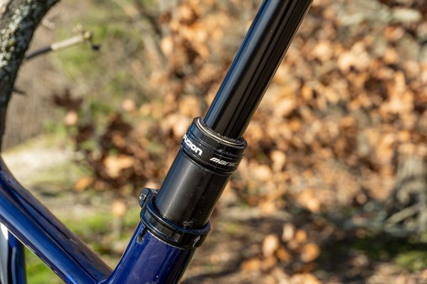 Nyilván lehet vele menni felfelé is, hiszen rajta van a Sram Eagle, ami még gyengébb állóképességgel is felsegít bárhová. Ez egy 1x12-es hajtás, azaz elöl egy, hátul 12 lánckerék van, de az első csak 34 fogas, míg a legnagyobb hátsó 50. Ezzel a kombóval akár a függőleges falon is fel lehet tekerni. Természetesen a rugóstagok kompressziója is növelhető addig, amíg már nem mozdulnak be, így nem vész el a tekerésbe fektetett erő, és van dropper is. Ezzel a nyeregmagasság szerszám nélkül, a kormányról állítható, tekerésnél kitolva, lejtőzésnél leeresztve, ahogy igazán kényelmes.
