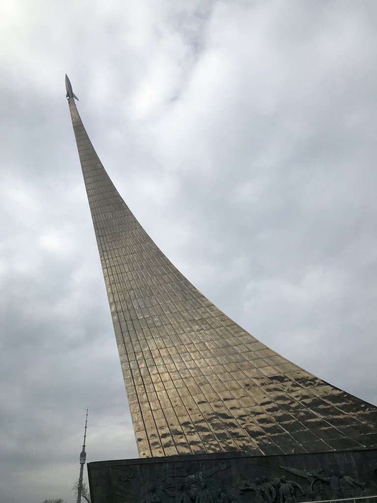 Metrózni persze olvasmányélmény nélkül is csúcs, már csak az állomások stílusa miatt is. Van itt barokk, szocreál, még olyan állomás is, ami olyan, mint egy föld alatti palota. Mellesleg 57 rubel egy jegy, azaz cirka 280 forint, ennyiből kedvünk szerint mehetünk, amíg fel nem kell jönni a felszínre. Mi a Moszkvai Űrkutatási Múzeumnál szálltunk le, ami már a kívülről is sokkolt. A múzeum tetején egy szobor van, amolyan visszafogott, jó ötven méter magas acél remekmű. Elsőre azt hittem, egy taraj, de nem, a hatalmas fém elem a rakétából kilépő gázokat mintázza, a tetején pedig ott a rakéta. A talapzaton természetesen ott van Marx, Engels, Lenin, szóval igazi szovjet műalkotás.