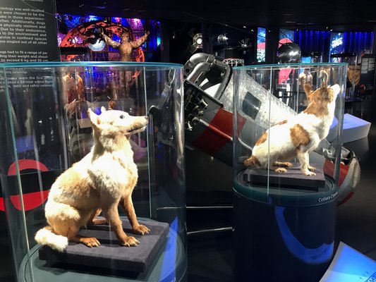 Ő mutatta meg Strelkát és Belkát, illetve a kutyák kipreparált testét. Mindenkinek Lajka van meg (mellesleg az ő kapszulája is itt van), de Strelka és Belka volt a két első emlős, amelyek élve tértek vissza a bolygóra az űrutazásból. Lajka 1957-es repülésénél ez még tervben sem volt, pusztán az életfunkciókat vizsgálták a Földről, telemetriával. A hivatalos kommunikáció szerint hat napig volt életben odafent, míg el nem fogyott az oxigénje, ám 2002-ben elismerték, hogy néhány órával a kilövés után Lajka egyszerűen megsült a meghibásodott hűtőmodul miatt. Strelka és Belka 1960-ban ezzel szemben épségben visszatért, még az űrhajójuk is itt van, rajta a becsapódásnál keletkezett sérülésekkel.