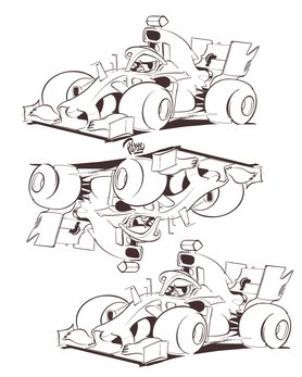 Aztán térjetek át a modern Forma 1-es autóra, és számoljátok meg, azon bezzeg hány és miféle szárny van. Örüljetek együtt, hogy az egyik rajzon eleve fejjel lefelé van, így elmondhatod, hogy kb 200-250 km/h körül azok a szárnyak olyan sok leszorítóerőt termelnek, hogy akár mehetne is így egy F1-es, fejjel lefelé, egy alagút tetején.