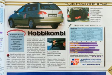 Szigorúan be is tartottuk. Így történt, hogy valahol külső helyszínen voltam, más esetben nem is mentem volna be a Rákospatak utcai szerkesztőségbe, de este ott várt egy Avensis tesztautó. Azt tudni kell, hogy nagyon közel laktam a szerkesztőséghez, villamossal 6 perc ajtótól ajtóig, autóval és biciklivel 10, gyalog tán 20 perc volt, pusztán azért, hogy egy kétliteres, dízel Avensis legyen a fenekem alatt, egy lépést sem tettem volna. A karosszériaformára nem emlékszem, csak a színre, és hát az autó elejére, érthető okokból. De 99 százalékig biztos vagyok benne, hogy ez a kombi volt a törés szenvedő alanya, amit kifotóztam az Autópiac újságból. A cikket egyébként nem is én írtam, hanem Hernádi Géza kollégám.