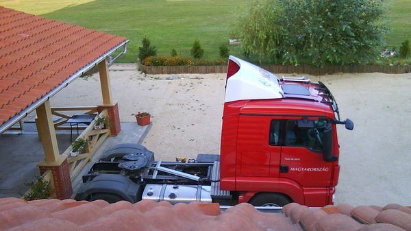 Első látásra a 320 lóerő nem tűnik soknak, de tudva azt, hogy kb. 3-8 tonna terheléssel közlekedem, a magyar utakon bőven elég is. Minden kényelemmel el vagyok látva a kormánynál.