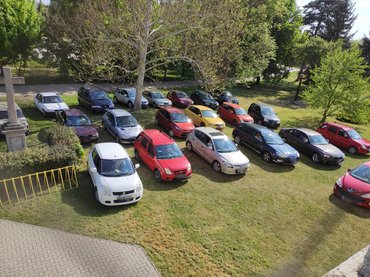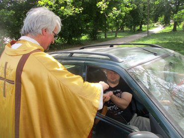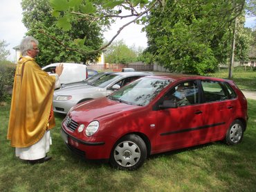 Általában 12-15 autó szokott jönni a szentmisékre, legutóbb 26 érkezett. Olyan családtagok is elhozták az otthoniakat, akik ritkábban szoktak jönni. Így hamar kiderült az is, hogy szinte minden családban van autó és csak néhány személy az, aki autóhiány miatt nem tudott eljönni. E 26 autó jelenléte, bennük a 3-4 személlyel nagy örömmel töltött el és elhatároztam, hogy nem hagyom abba az autós miséket, hanem amíg tart a rendkívüli helyzet, addig folytatni fogom e biztonságos körülmények között a szentmisék bemutatását. Magam vagyok a forgalomirányító a misék előtt és után. Hazaindulni csak akkor lehet, ha az adott gépkocsi megkapta tőlem az úti áldást.