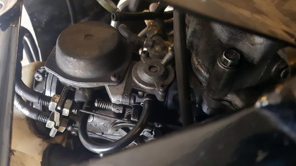Tehát azóta megint szétszedtem, de képtelen voltam megtalálni magamban az elhatározást (leginkább az időt), hogy megcsináljam, mert az újabb szétszedéskor még a zsírpatronos szívatója is szétesett. Tehát lehetett szívatópatront rendelni az eBayről (10e), akkor már vettem új gyertyát (valami 3e). És a karbiról szétszedés után sem derült ki semmi.