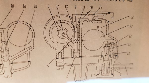 Oké, karbi le, harmadszor is patyolattisztára nyaltam mindenét, úgy átfújtam kompresszorral, hogy esküszöm, már a járatok is tágulni kezdtek. Aztán néztem alaposan. Majd felmentem a szerelőkönyveimért a házba. Felütöttem a Weber 26 OC-nél. Alaposan végignéztem minden járatot, hogy mi, mire való, hol akadhatott el valami egészen különösen gonosz gumidarab.