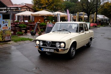Én pedig a friss rendszám birtokában használni is kezdtem a még szinte kisbabapopsi-hamvasságú öreget. Egy fokozatosan mind erősebbé váló elsőfutómű-zörgést leszámítva tényleg azt éreztem – sose vágytam ugyan új autóra, de azért ez nagy fíling. Ennek a kocsinak minden mozdulata precíz, mégis puha, nincsenek lötyögései, támolygásai, azok a hibák, amiket hasonló Alfa Romeók használata során mindig tapasztaltam – az A-tartóval oldalirányban megtámasztott merev hátsó híd riszálása, a középen kissé pontatlan kormányzás, az, hogy gödrökön áthajtva megszólalnak az ajtók a kereteikben (naja, vékony szigetelő gumikat alkalmaztak akkoriban), a kipufogó felkoppanása, a szélzajok... hát ebben sehol. Ez patent, sőt Patent, nagybetűvel az elején. Elámul az ember, hogy micsoda hihetetlenül jó minőségű, modern érzetű, ma is fürgének tűnő autókat gyártottak az olaszok 1976-ban a tömegek számára. Ja, mellesleg ezt 1962-ben tervezték. Tudtak.