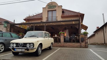 Óriásikat autóztunk a vajdarabbal, megállapítottam, hogy ennél potensebb oldtimerünk még nem volt soha: a hatalmas csomagtartó egy böffenéssel elnyelte a cuccainkat (fért volna még), isteni ülés esett a barna székekben (megkockáztatom – a kontúr miatt kényelmesebbek ezek az állólámpás Merciénél, hátul Bálint szerint meg pláne), lazán robogtunk 130-cal Egerig, s minden kanyar egy ízesen fűszerezett tandori csirkeszárny volt, amerre jártunk. És a hangok, azok a hangok... Ferrarin innen nincs annál kellemesebb, mint a hangolt leömlős, két ikerkarbis Busso DOHC száraz recegése.