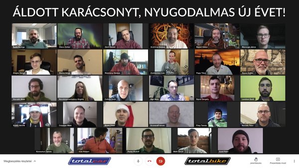 Sokáig gondolkoztunk, hogy milyen témát válasszunk, ahol adja magát a maszk és nem is kell összeérnie a vállaknak, de mivel hentesek is voltunk már, inkább úgy döntöttünk, úgy mutatjuk meg magunkat a képeslapon is, ahogy az év jó részében egymást is láthattuk: egy online konferenciahívásban. Persze fájó, hogy elmaradt a fotózással járó buli és a vicces képek, de így legalább esélyt sem adunk neki, hogy esetleg megfertőzzük egymást.