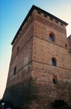Elkezdődött a szívás. Próbáltuk lengőkarnál emelni az autót, persze ez nem merev hidas, az alsó lengőkar meg ferde, nem sikerült, majd valahogy a végén két emelővel sikerült megoldani a dolgot. Asszem csak egyszer akart leborulni az autó, de túléltük. Ezzel a kis közjátékkal elég sok idő elment, így kissé elkéstünk az ebédről, amit egy igazi, csodálatosan szép vár, a Castello di Grinzane Cavour éttermében tartottak.