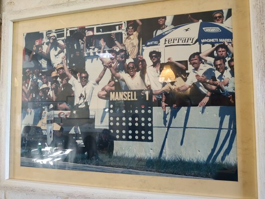 Ez a fotó 1989. március 26-án készült Rio de Janeiróban, amikor Nigel Mansell megnyerte a Ferrarival a Brazil Nagydíjat. Aki középen, két kezével integetve ünnepel, Cesare Fiorio.