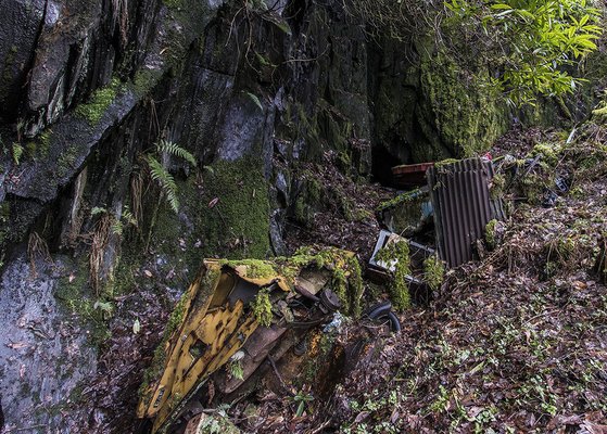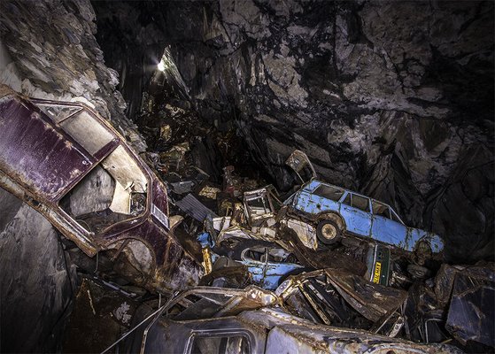 Robin Friend angol fotós a fényviszonyok okozta kihívás miatt kezdett el bányákban fényképezni, de a Wales-ben található Ceredigion közelében nem várt témára bukkant: több emelet magas földalatti roncstelep pihent az elhagyott palabányában.
