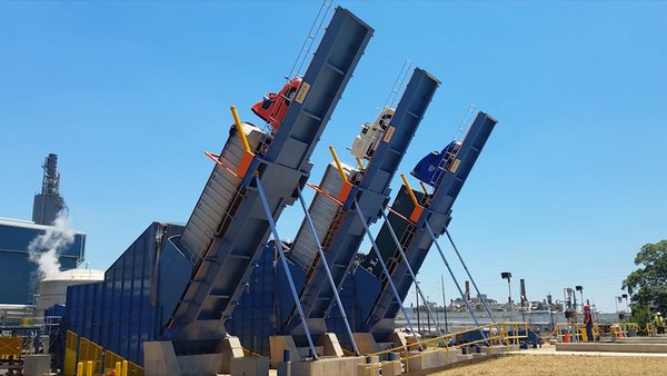 A videón az amerikai Bruks vállalat technikája látható, amint (egyebek mellett) a bioenergia-termeléshez szükséges faforgácsot üríti a teherautókból. A teljes ciklus mindössze 8-9 percet vesz igénybe, ráadásul a fogadó fél részéről nem szükséges plusz ember, a szerkezetet a sofőrök működtetik: szerkezettől függően feltolatnak vagy ráhajtanak a rámpára, ezután egy biztonsági lánccal rögzítik a járműszerelvényt, majd az irányítófülkében a fel-le gombok segítségével elintézik a döntést/ürítést. A Bruks standard platformja 23 méter hosszú és 63 fokos szögben képes megdönteni az 54-82 tonnás szerelvényeket.
