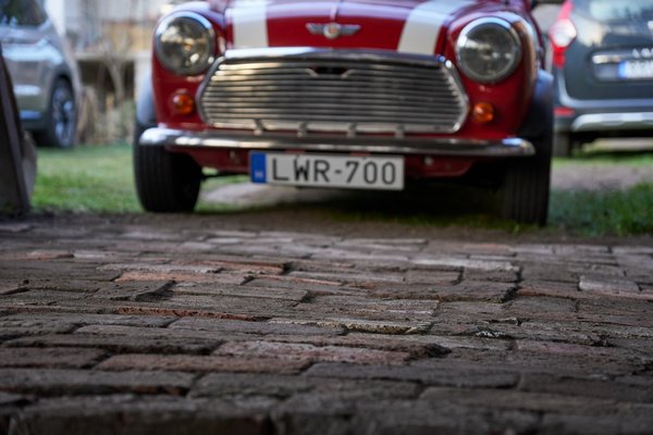 Az egy dolog, hogy hangos a kipufogó, olyan akad más autón is. Inkább az a sztori, hogy a négyhengeres benzinmotor gyakorlatilag az ölemben jár, annyira közel van a kormányhoz a motortér, és mindössze egy vékony acéllemez választ el tőle – a hangszigetelés a gyengék fegyvere. Linczmayer Balázs Mini guru pedig, akihez fordulok ha bajom vagy kérdésem van, felhívta a figyelmem, hogy a katalógus nem hazudik, amikor 5550-es fordulatot ad meg a 61 lóerős csúcsteljesítmény mellé: a Coopert hajtani és forgatni kell. Kicsit kevésbé, mint valami egykorú Hondát kéne, de azért kell, és hiába harminc éves, még nem érdemes eltekinteni ettől. Úgyhogy irány a mély víz, még február végén beültünk a lányommal, és elindultunk Galyatetőre.