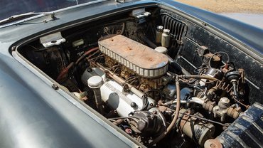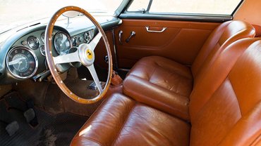 Ma sincs ez másképpen az 1955-ös Ferrari 250 Europa GT-vel, aminek ennyi év után 33 671 km-t mutat az órája (a szakértők szerint ráadásul jogosan). Rozsdás és kopott, nem csillognak rajta a krómok, néhol horpadt a karosszéria és lekopott a festék, de varázslatos patinája van így, a fekete kaliforniai KPP 427 rendszámmal.