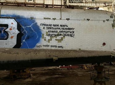 Szóval az itt pihenő Buranok nem voltak teljesen érintetlenek, de hogy valaki azért szökjön be hozzájuk a világ végére, hogy összefirkálja az egyiket, az nehezen érthető. Külön kár, hogy olyan semmitmondó szövegek kerültek szerencsétlen sikló testére, minthogy Jura (Gagarin), megjöttünk. Vagy ott van a közhelyes bölcselet az orrhoz közel, miszerint: Mielőtt az ember a csillagok közé megy, meg kéne tanulnunk, hogyan éljünk a Földön. A vandál/vandálok a képek alapján csak az egyik űrsiklót fújták össze, de nem tudni, hogy azért, mert így is tervezték, vagy megzavarták, elfogták őket fújkálás közben. Mindenesetre bele kell törődni, hogy a szovjet űrtörténelem egy darabját ezután már csak ezekkel a béna graffitikkel látjuk a jövőben. Tekintve, hogy az állagmegóvásukra nem költenek, letakarítani aligha fogják.
