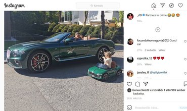 Ha autóról van szó, akkor úgy tűnik, a Bentley áll legközelebb a szívéhez. Az Instagramon egy Continental GT Speed Convertible-ből mosolyog a kislányára, akinek ugyanolyan méregzöld kabriója van, csak éppen gyerekméretben. Lewandowskinak ezt megelőzően volt már egy kék is, a jelek szerint csak színt váltott, típust nem. Amúgy 650 lovas W12-esről van szó, 3,6 másodperc alatt gyorsul százra. Klubját, a Bayernt az Audi támogatja, így az ingolstadtiak legjobbjai közül is válogathat.