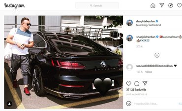 Pár éve egy Volkswagen Arteonnal posztolt közös képet, igaz, a német gyártó legelegánsabb modelljét fantáziadúsabb színben is választhatta volna, de ízlésről ne vitatkozzunk. Vélhetően nem az 1,5-ös TSI-vel szerelt alapmodellt vette, a jobb hátsó lámpa alatt megbúvó embléma arra utal, hogy az összkerekes 2,0 TSI 4Motion R-be ült be, a 320 lóerő talán már elegendő.