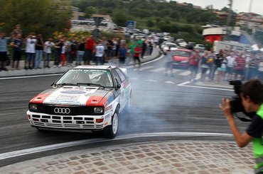 Például az ős Audi Quattro, bár igazi forradalmár és legenda a rali történetében, éppen arról híres, hogy nem egy táncos legény. Ehhez képest San Marino útjain egy osztrák csávó, bizonyos Christof Klausner olyan elképesztő tempóval és annyira keresztben ment mindenhol az öthengeres Audival, hogy egyszerűen nem hittem a szememnek – ilyen van?!