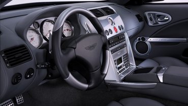 Utasterében természetesen mindenhol bőrkárpit figyelt, a légkondi és a hifi meg a gazdag műszerezettség mellett navigációs rendszer is lehetett a csúcsmodellben. Szemben a DB7-es klasszikusabb fa dekorelemeivel itt a modernséget sugárzó fémeket hangsúlyozták.
